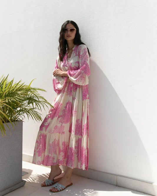 En rupture de stockPleated Long-Sleeved Dress With Slit