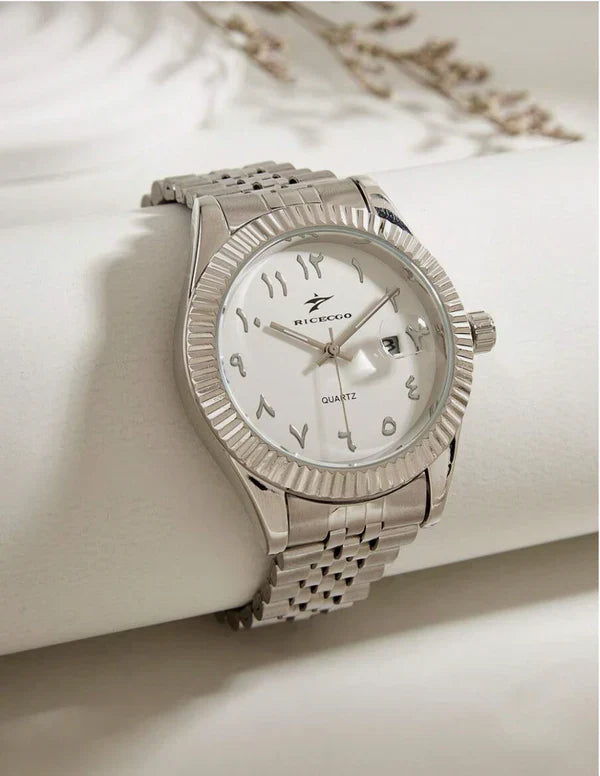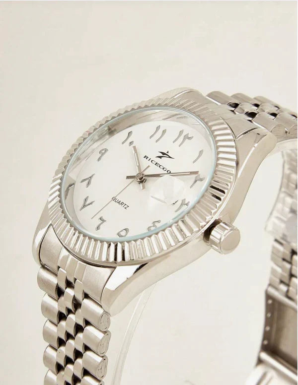 Discover the timeless elegance of the Arabic watch. Featuring a distinctive Arabic dial, this watch combines style and functionality. Powered by a reliable quartz movement, this watch offers remarkable precision. Its stainless steel bracelet adds a touch of sophistication to any outfit.