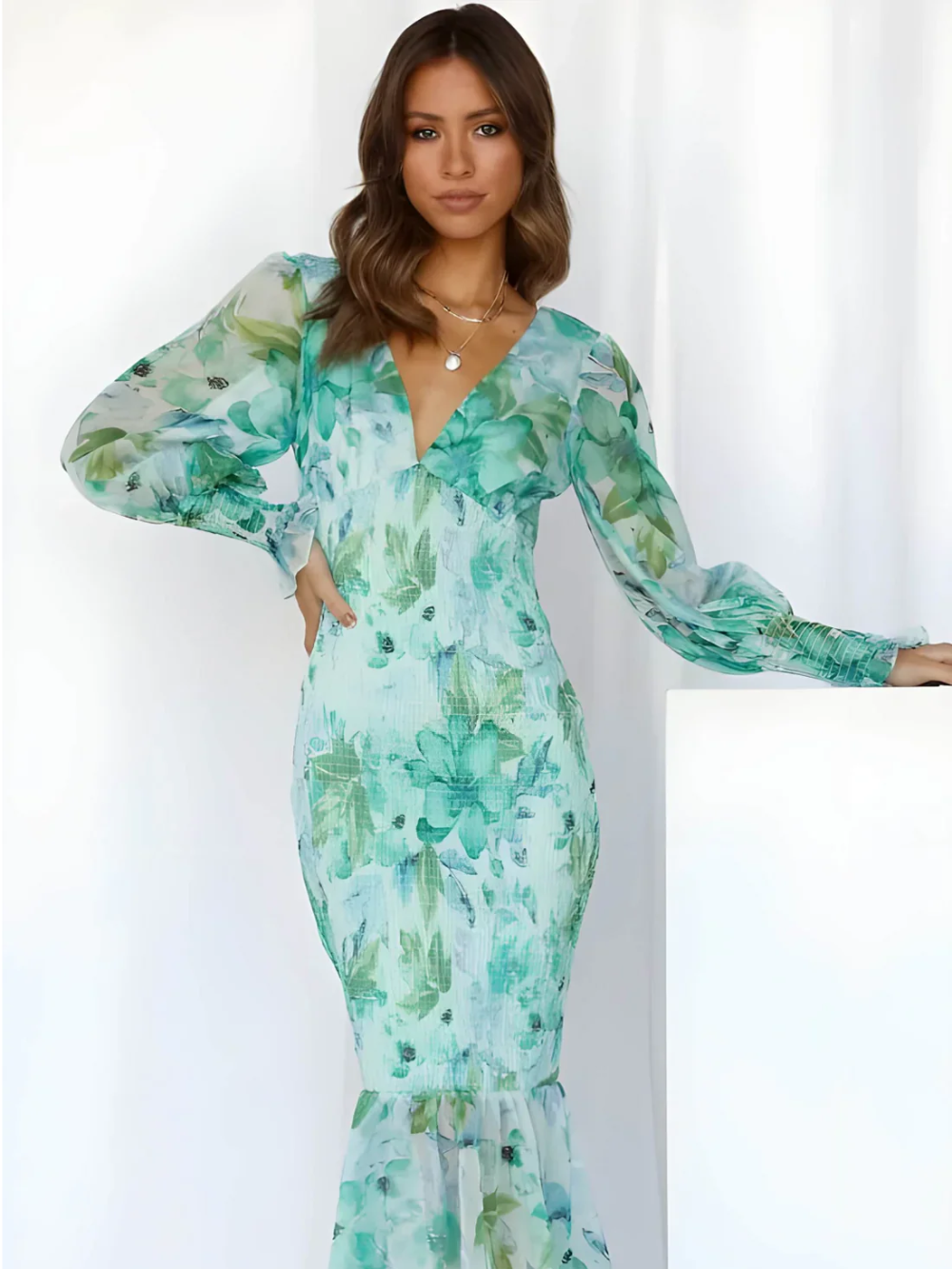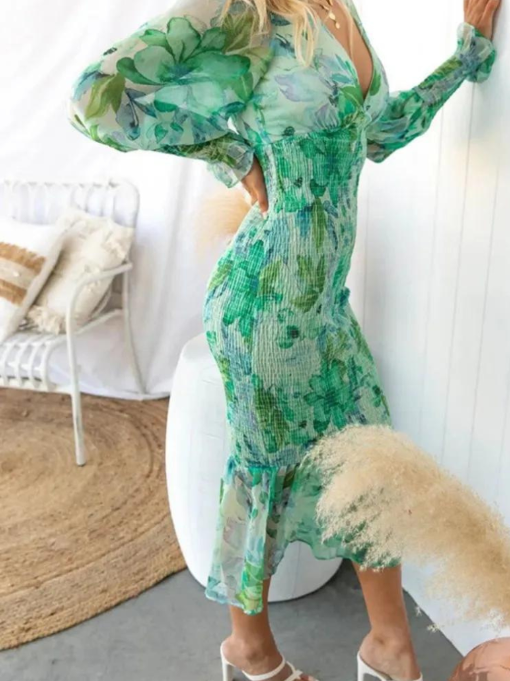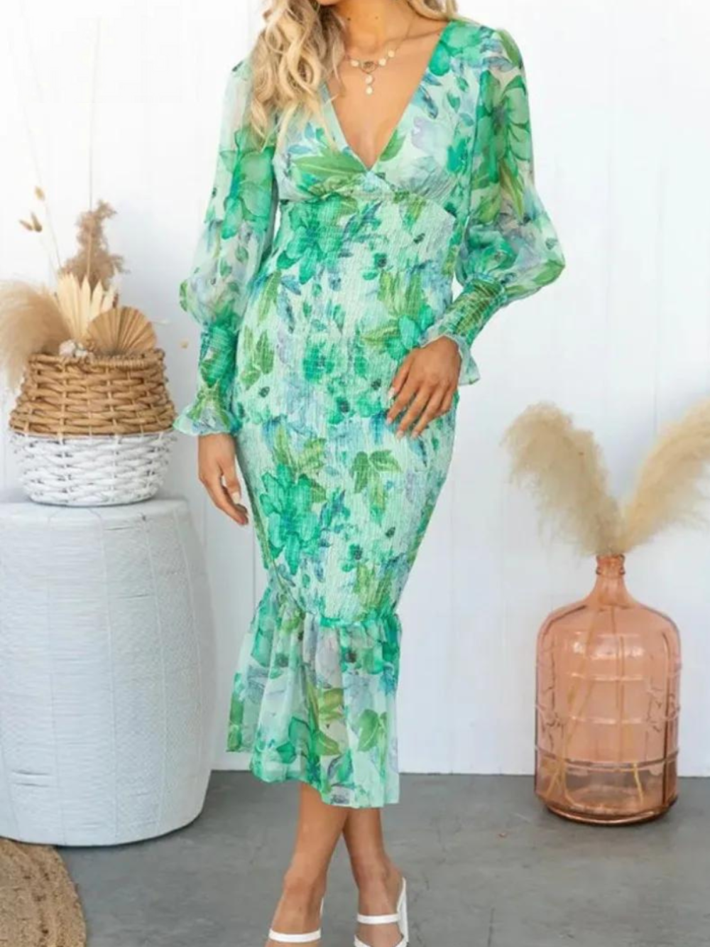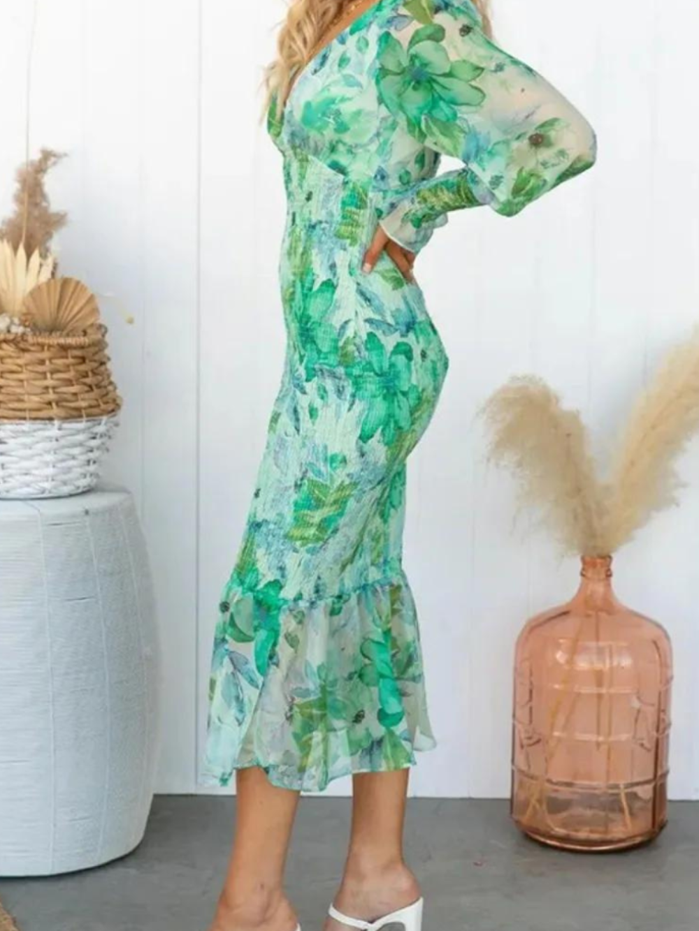 Experience unparalleled elegance and comfort with our floral print dress that combines modern design with a high level of comfort. The floral print will add color to your closet and the flattering cut will keep you comfortable all day long. This dress is suitable for both casual outings and festive occasions.