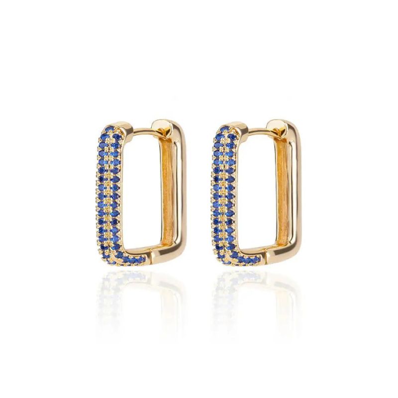 The earring features a ring skillfully crafted from precious metal, often gold or silver, which offers durability and a luxurious finish. The hoop is adorned with a variety of colored zirconias, strategically set around the surface, creating a rainbow of sparkling colors.