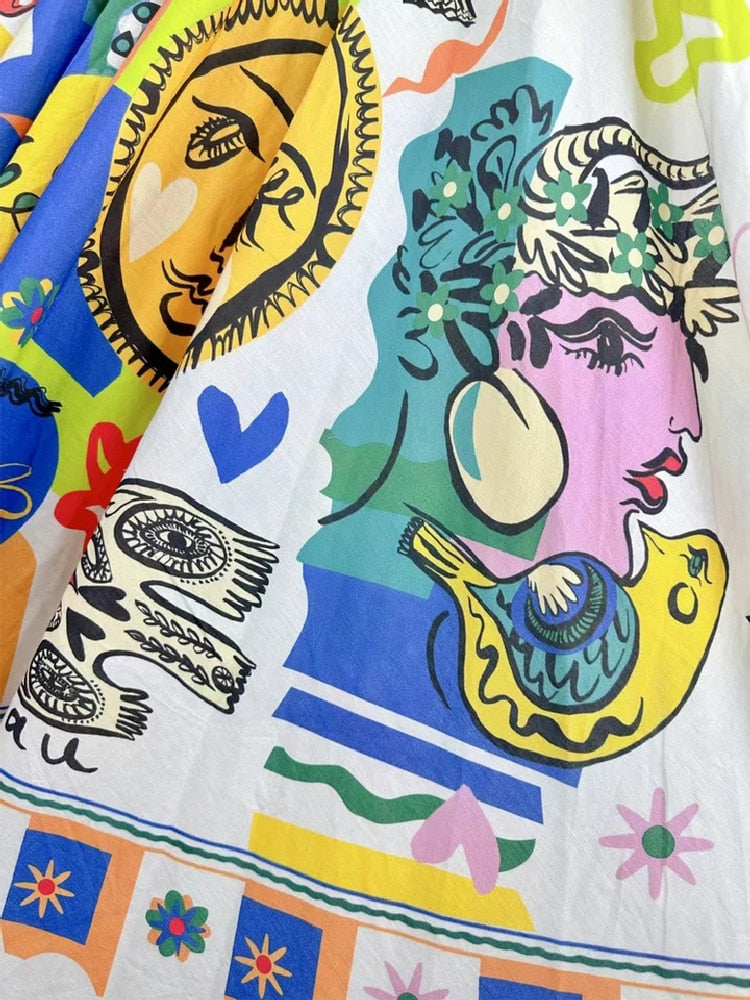 Elegant and timeless, this dress stands out for its print. Made from high-quality fabric, its bright colors and charming designs capture the essence of Brazilian modernism.