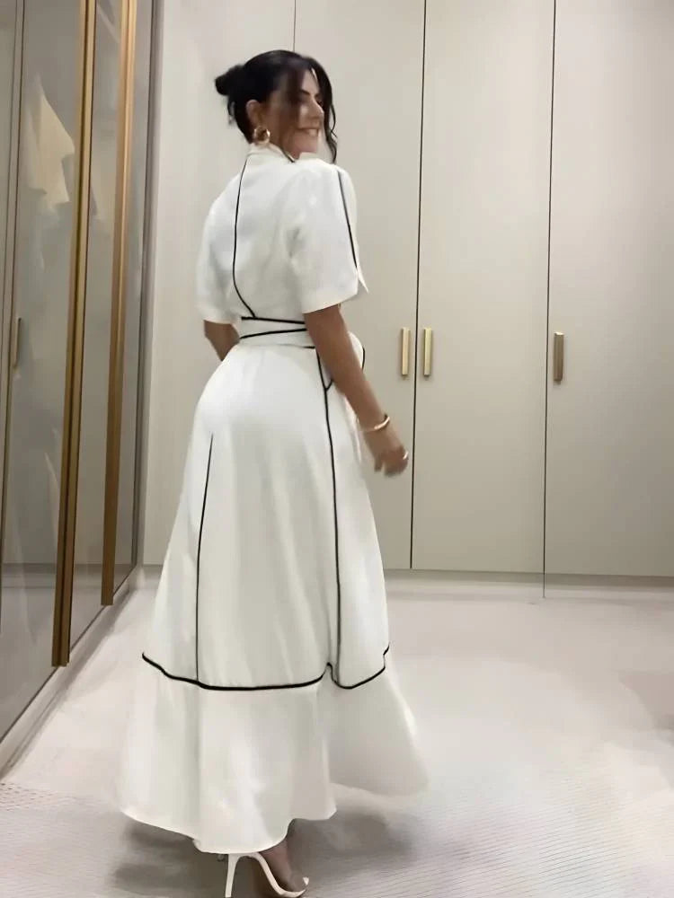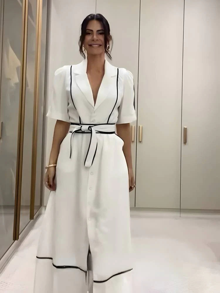 The short sleeve dress with an impeccable fit and minimalist design enhances the feminine silhouette, while the belt adds a touch of style and defines the waist. The Short Sleeve Bodycon Dress With Belt is versatile and can be worn on a variety of occasions, from casual events to special encounters.