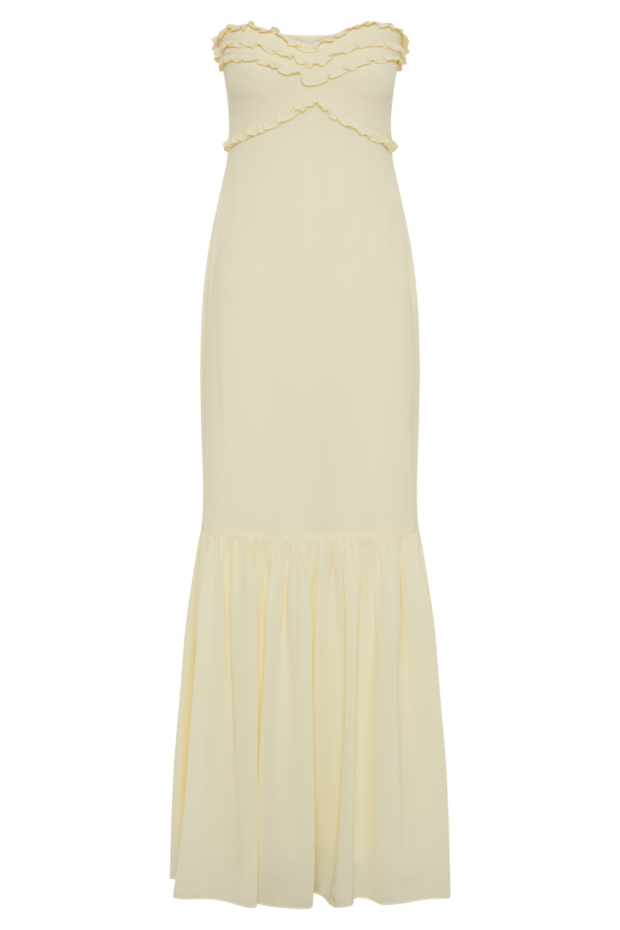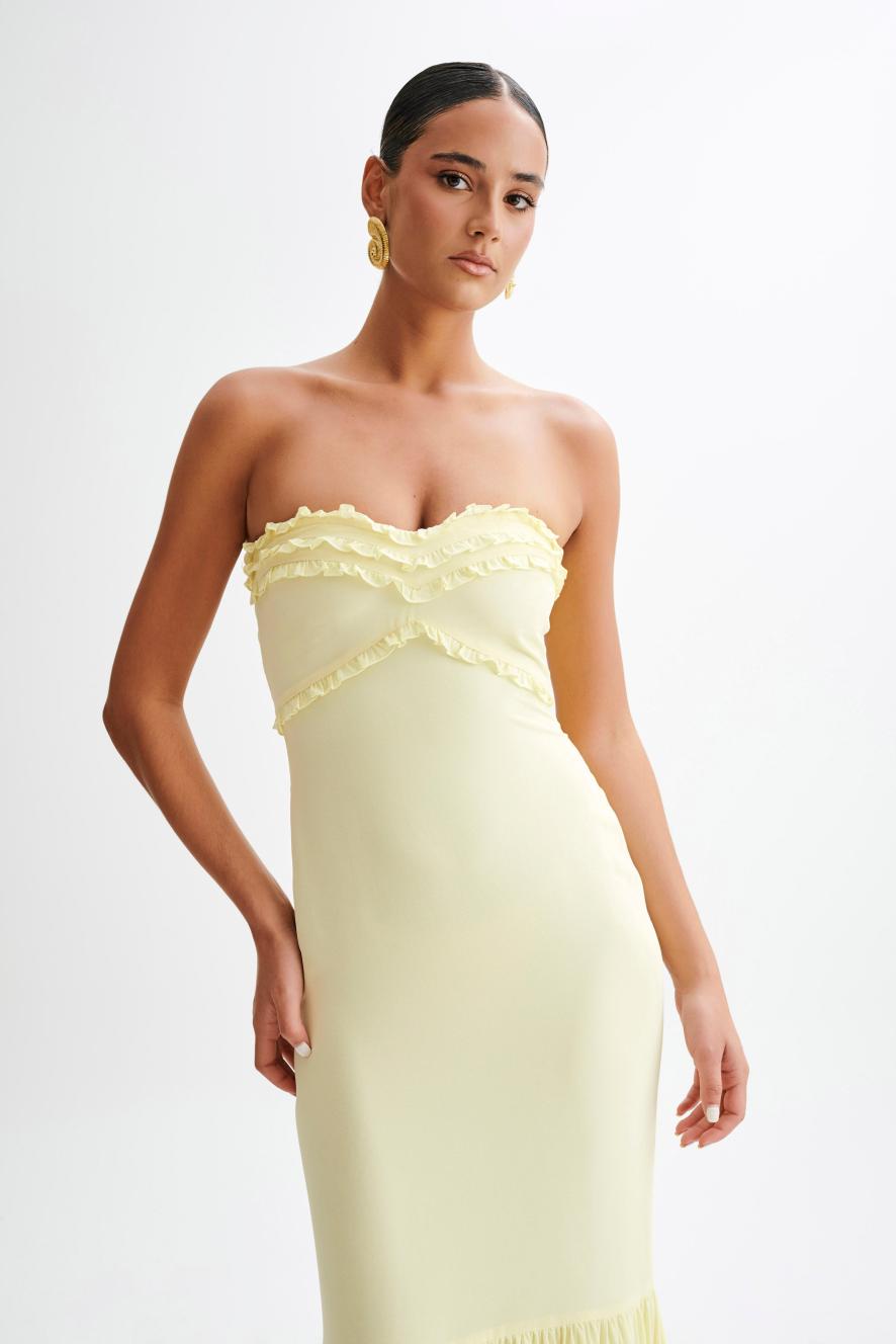 Get ready to shine at your next event in this stunning Strapless Chiffon Maxi Dress. Crafted from soft, flowy chiffon fabric, this strapless maxi dress creates an elegant and romantic silhouette.