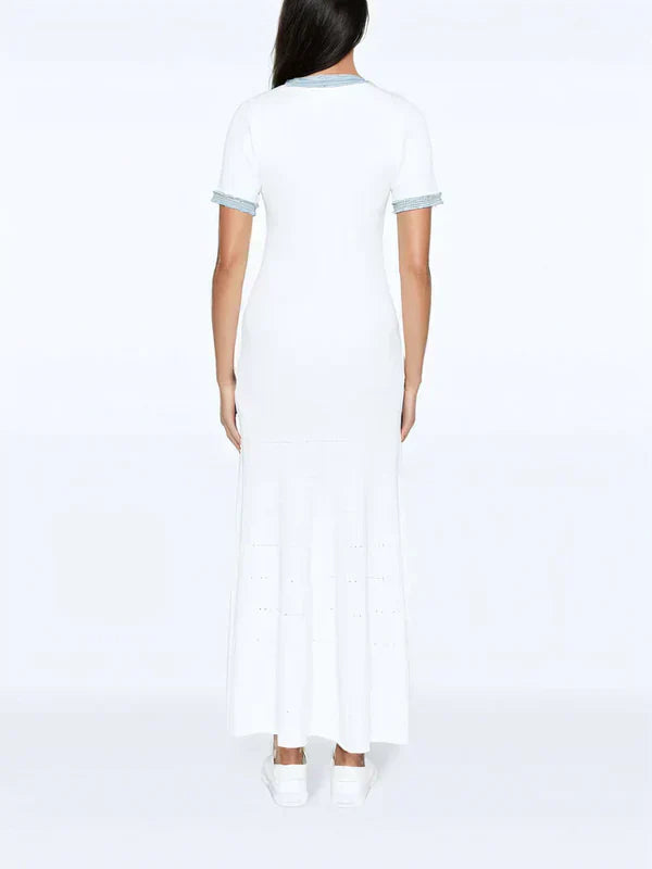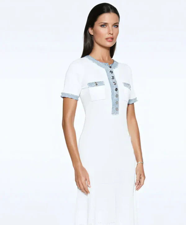 ✔️ Colorful detail : The white dress is subtly decorated with blue details, giving a fresh and summery look.