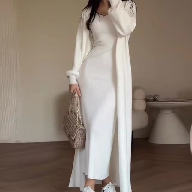 Discover the versatility of the Two-Piece Dress, the ideal choice for those looking for a modern and elegant look. This set consists of a long dress and cardigan, allowing you to create unique and personalized looks for various occasions.