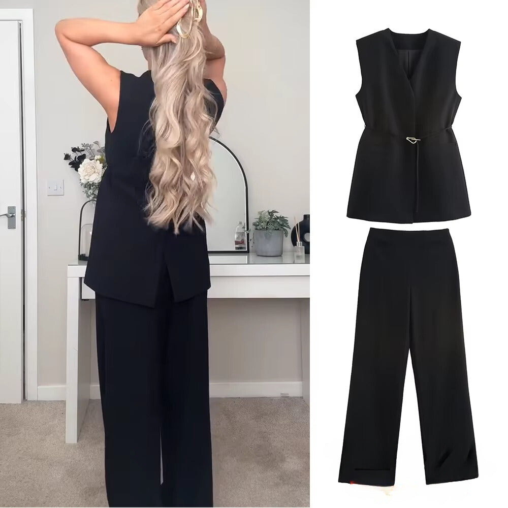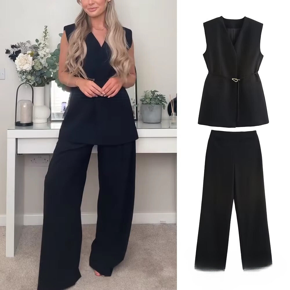 Experience the comfort and versatility of the Women's Casual Vest And Pants Set. This set is ideal for those looking for a relaxed and elegant look, perfect for everyday or informal occasions.
