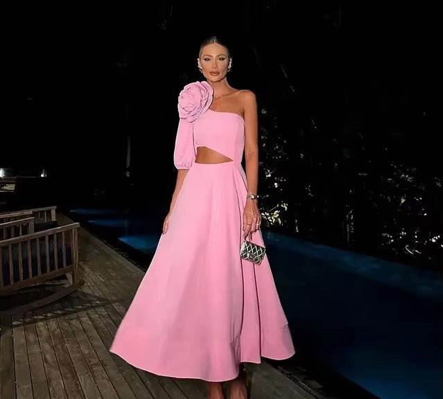 Transform your closet with the Women's Maxi Dress With Flower, the ideal choice for those looking for a charming and sophisticated look. This maxi dress features a flower appliqué on the shoulder, which brings freshness and elegance to any occasion.