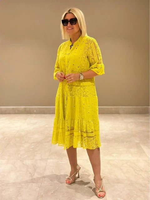 Experience the elegance and comfort of the Women's Mid-sleeve Dress. This three-quarter sleeve dress is the perfect choice for those looking for a versatile and modern look for everyday wear or special occasions.