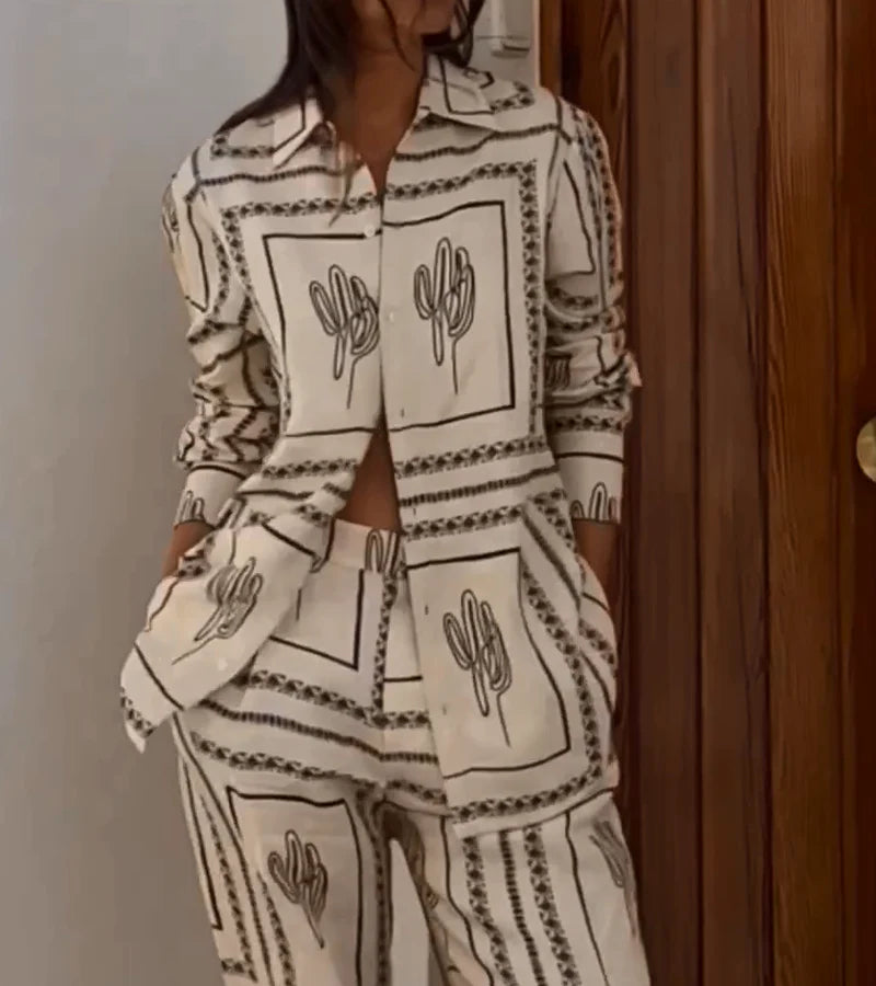 The Women's Pants And Shirt Set is crafted from high-quality fabrics, providing an impeccable fit and a refined silhouette. The timeless design and neutral colors create a modern and versatile look that can be easily adapted to different occasions.