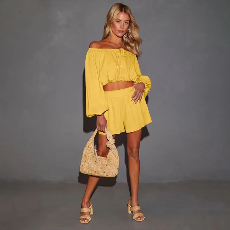 Enjoy sunny days with the Women's Summer Two-Piece Set, the ideal choice for those seeking comfort and style during the hottest season of the year. This set consists of a blouse and lightweight shorts, designed to offer freshness and practicality.